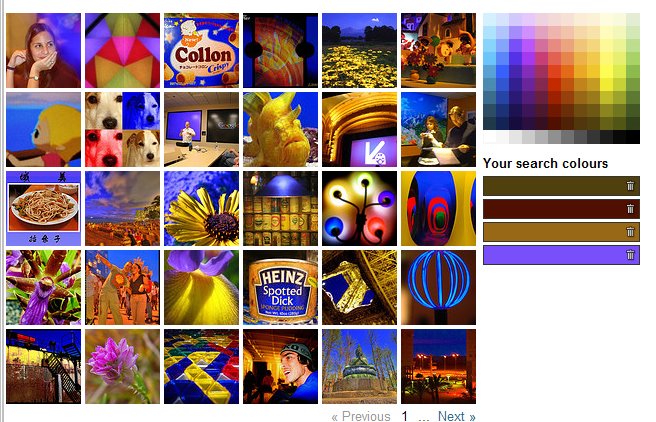 Multicolr Search Lab have produced a nifty little app that lets you search through 3 million “interesting” Flickr images by colour. Fun to play with – and could be useful for those colour-themed lecture slides…