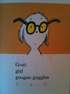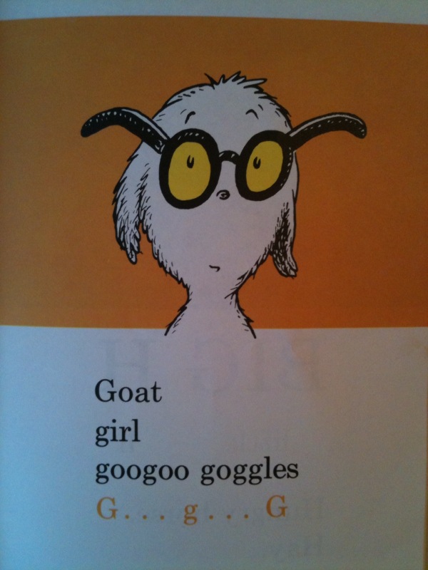 I was amused to find this in one of the Wee Man’s favourite books: Dr Seuss’s ABC. 1963, Read it all by myself beginner’s books. Random House, New York, page 19.