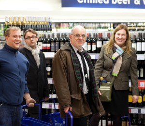 after her inaugural. So its probably ok to post this pic of the team undertaking the wine run to the nearest supermarket (right to left): Me, Simon Mahony, Andy Hudson-Smith and Steven Gray, with Tim Weyrich on camera duty plus wine carrying duty. Also thanks to the Dean, who dealt with payment, and choosing the vintage of the red.