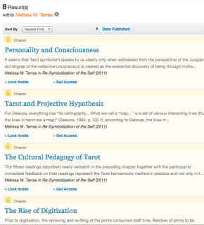 At the end of last week I was pulling together some internal appraisal documentation – the kind of thing where you say “oh look how many people cited my work over the past year”. Wandering over to my Google scholar profile to check some citation counts I noted something weird. Alongside my usual digital humanities-ey, digitisation-ey, digital classicist-ey journal papers and book chapters were some strange papers that I definitely had not written. Things like Human Experience and Tarot Symbolism, (link still working to my Google scholar profile at time of writing) or Tarot and Projective Hypothesis.