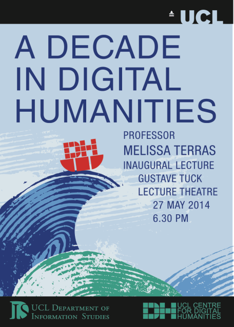 So, my inaugural lecture is coming up in a few weeks, and I’m starting to write it now, nervously… The event has already sold out, but will be streamed online live, and there is also another lecture theatre at UCL that it will be shown live in (The Terras Terrace?). Dr Rudolf Ammann, UCLDH’s designer at large, has kindly provided some visuals for me… here’s the promotional flyer.